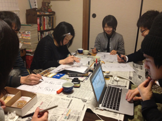 当日は、参加者のみなさんで2012年の抱負を書き初めし、つれづれ郵便局にそれを投函。後日(日程未定)郵便局員が、投函された書き初めを集めてプリントTシャツを作成します!!使いたい紙や道具がある方は、各自持ってきてください。