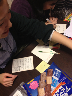 実はこの日、永世アルバイト局員ことぐつさんの卒業をお祝ひしたのでした。つれづれ室を飾り付けたり、素敵帽子を作つたり、紙吹雪責めにしたりしました。準備は秘密裏に行はれ、当日のぐつさんを地味に驚かせましたよ。
