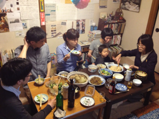 今日は、孝子さんの誕生日なので、勝手にお祝ひしました。皆に祝つて貰へて、私も嬉しい。ケーキもおいしい。