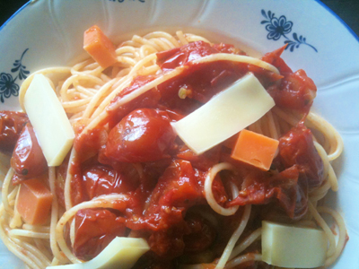 今日はトマトソースのパスタを作りました。