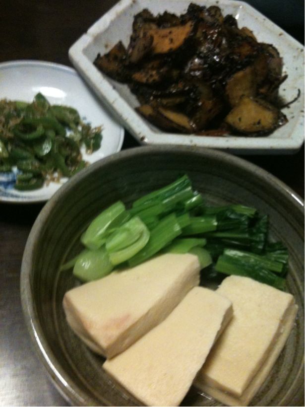 凍み豆腐と美味菜の煮ものとか