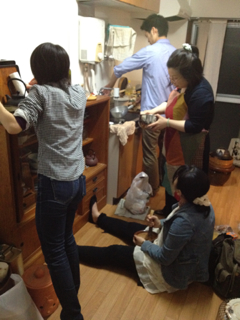 ゲストシェフの指示のもと、みんなで台所へ立ちます。